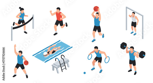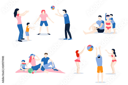 People playing games with dog pets, training them on playground, vector flat illustration. Trainers, pet owners teaching their puppies basic commands in city park using dog play equipment.
