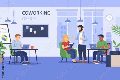 Electronics store cash-desk with salesman and people paying for purchases, vector flat illustration. Happy couple buying home appliances such as fridge, washer, loudspeaker, vacuum cleaner.