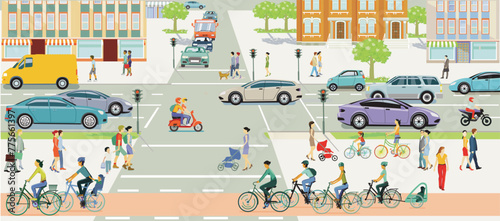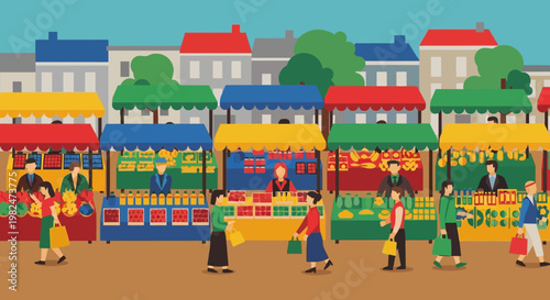 Vector illustration of mature people doing shopping in grocery store and in fruit and vegetable market stalls. Flat style design.