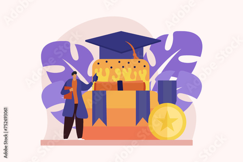 Vector illustration of senior couple doing shopping in grocery store. Elderly man and woman with shopping cart buying groceries. Purchases concept design element in flat style.