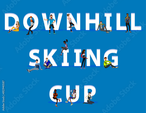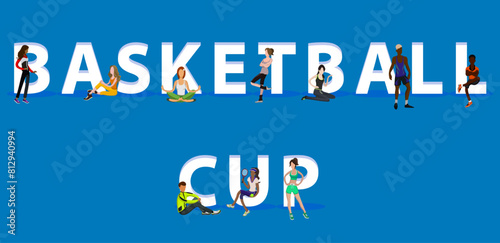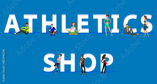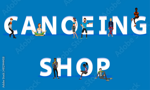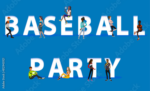 Radio fm online typography banner template, vector flat illustration. People creating podcast in studio, listening to audio programs and dancing. Internet radio, podcasting.