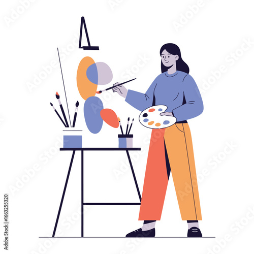 Vector illustration of musician guitarist in headphones playing guitar in radio. Radio people flat style design element, icon isolated on white background.