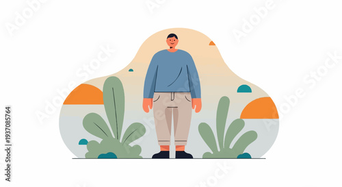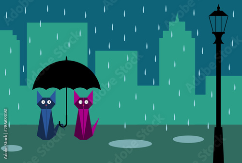 Rainy autumn vector flat style design illustration. Umbrella, raincoat, rubber boots, gloves, clouds, mushrooms, leaves and cup of tea with lemon. Autumn composition for web banner, website page etc.