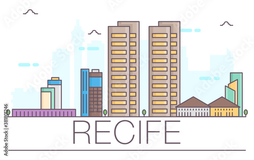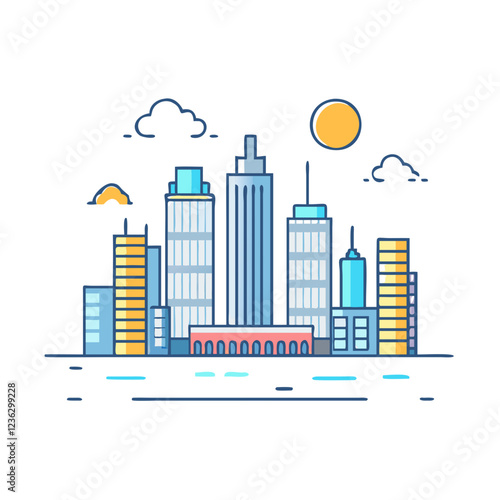 Raising bar graph with city elements, urban landscape. Vector illustration in paper art style. Modern city development.