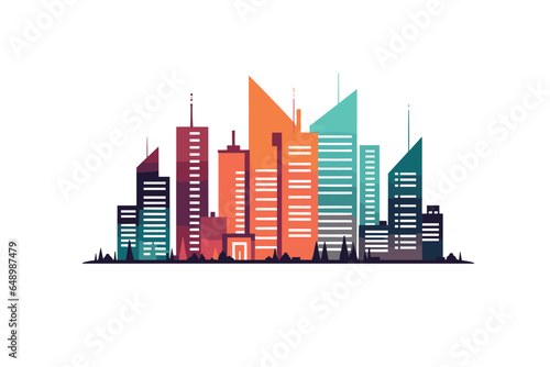 Raising bar graph with city elements, urban landscape. Vector illustration in paper art style. Modern city development.