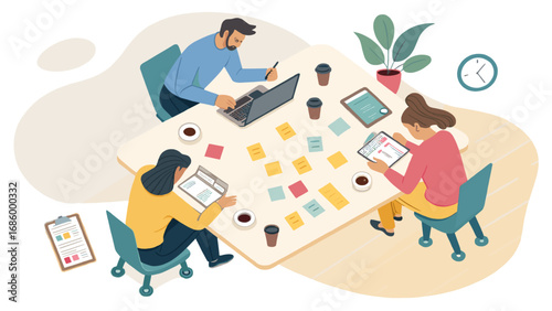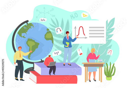 Micro male and female characters cooking fresh vegetable salad in big bowl, vector illustration. Raw food healthy nutrition concept for web banner, website page etc.