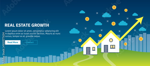 Real estate landing page design, website banner template. Vector illustration in paper art style. Mortgage loan, real estate investments.