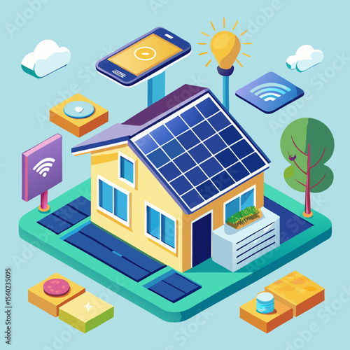Real estate online concept. Vector isometric illustration. Smartphone with house building, for sale sign. Mobile app design template.