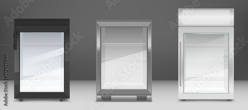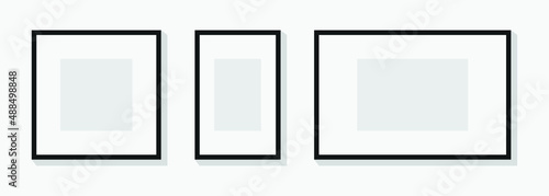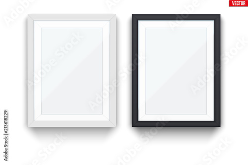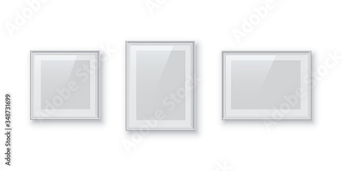 Realistic acrylic glass window with wide frame mockup isolated set. Transparent plastic rectangle signboard with copy space vector illustration