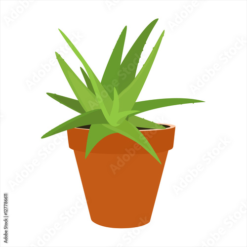 Realistic aloe vera medicinal succulent plant in pot with cut leaves vector illustration isolated on transparent background