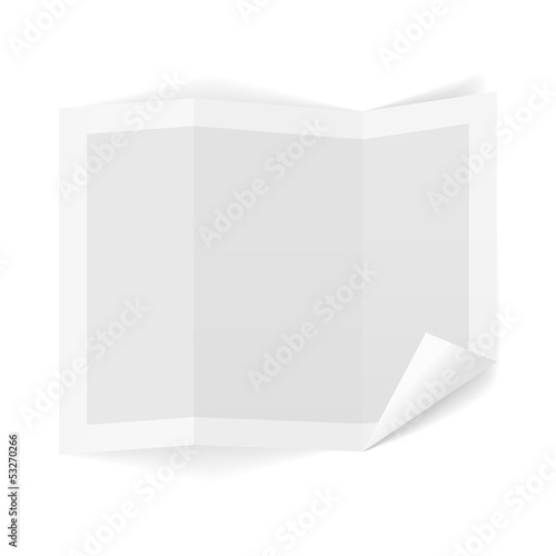 Blank folded paper sheet isolated vector set. Realistic white leaflet design template. Empty folding brochure page with copy space