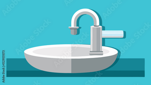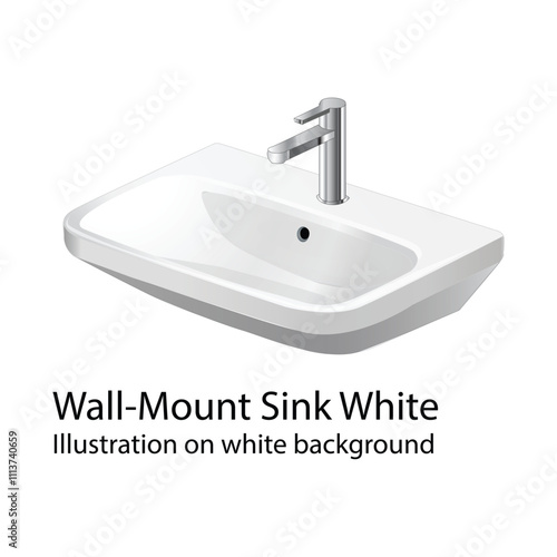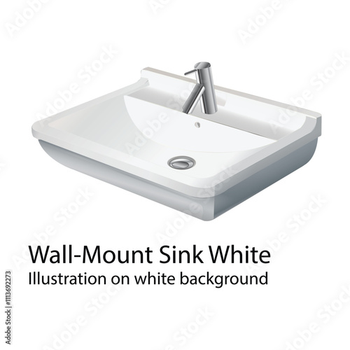 Realistic sink with tap vector. Hanged water basin 3d icon. Ceramic toilet wash equipment for washroom, restroom design interior