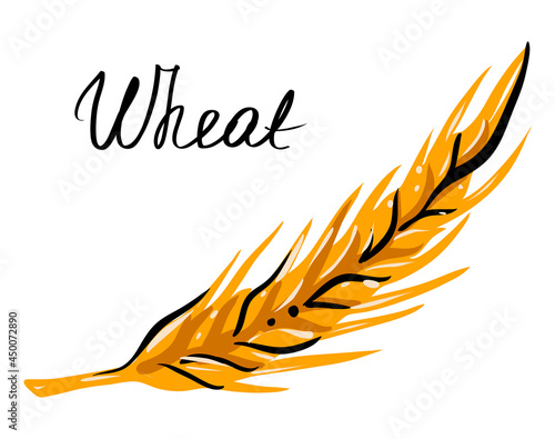 Vector wheat ears over milk splash icon. Realistic organic vegetarian food packaging design element isolated on white background