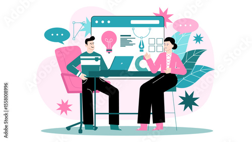 Vector illustration of scientist female working at lab. Laboratory interior and equipment. Recording results concept flat style design element.