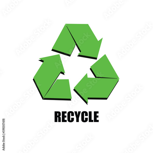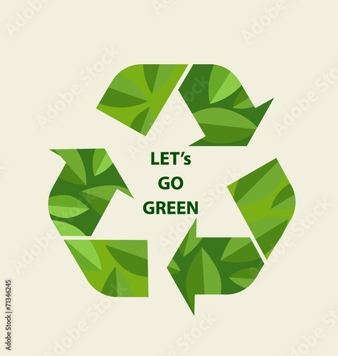 Recycle sign with leaves and flowers inside, vector illustration in paper art style. Eco friendly waste reuse and recycling symbol, label.