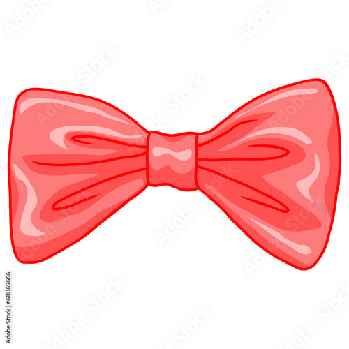 Red bow vector. Bowtie butterfly ribbon knot suit wear isolated on white background. Classic clothes elegant accessory illustration
