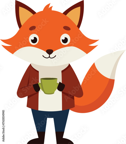 Red fox eating sweet birthday cake vector cartoon icon. Cartoon little forest animal licking delicious dessert illustration isolated on white background