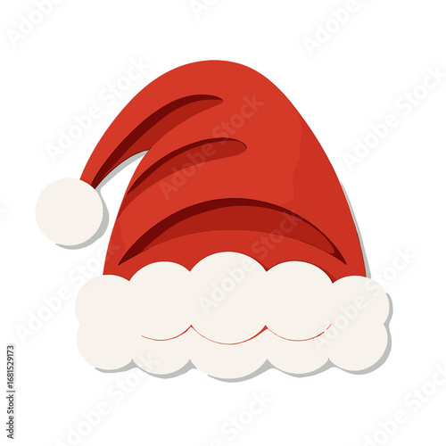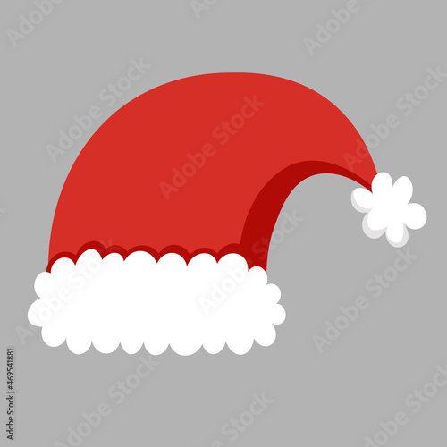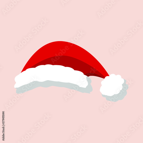 Red santa hat for Christmas and New Year party celebration vector icon isolated on white background.