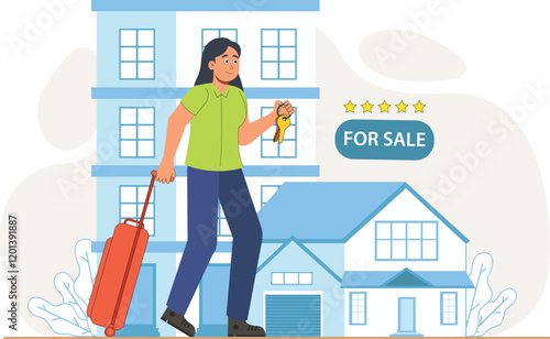 Refugees people run away from city bombing vector. Sad mother, father and daughter fleeing burning house. Stop war concept