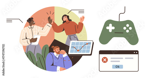 Relatives communicating online via group video call chat, flat vector illustration. Virtual meeting, connection with family and friends. Video conference technologies.