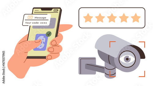Reliable bank vector flat style design illustration. Hand holding money, credit card, piggy bank, wallet, calculator, magnifier, mobile phone. Reliable savings concept for web banner, website page