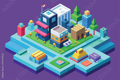 Relocation service web banner design template. Vector isometric new house, loaders unloading furniture and carton boxes from delivery truck. Moving, transportation, home removal concepts.