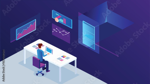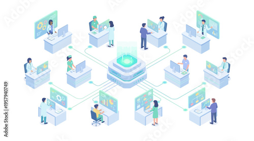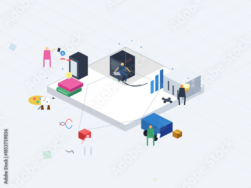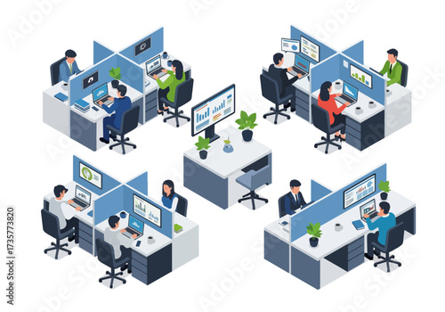 Remote hybrid working and freelance 3d vector illustration. People team work from home, beach, cafe restaurant resort, forest camping or office all over world infographic. Effective online business concept