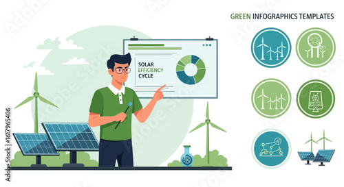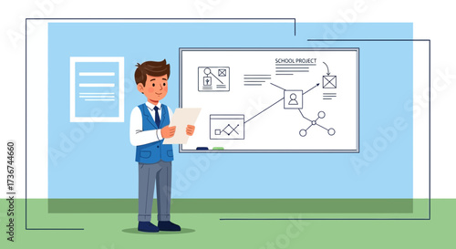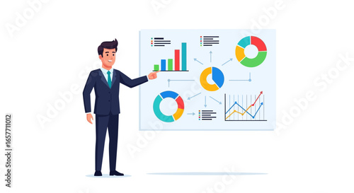 Businessman giving online presentation from home office, vector flat illustration. Remote presentation, conference, meeting. Stay at home in quarantine, coronavirus COVID-19 disease spread prevention.