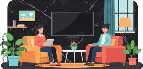 Teaching from home, vector flat illustration. Online education, e-learning, remote teaching, stay home in quarantine, self isolation, social distancing preventive measures due to coronavirus pandemic.