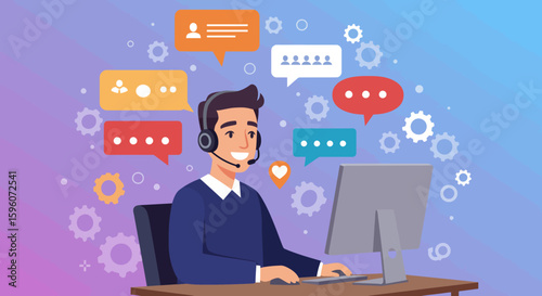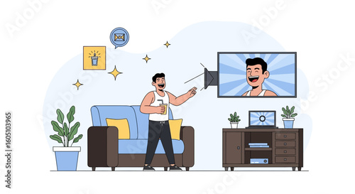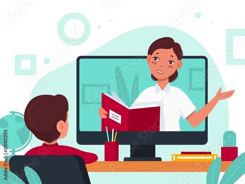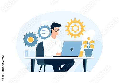Remote team working concept vector. Work from home illustration in flat style design. Remote business control and project management. Freelance job. Social network and internet friends concept.