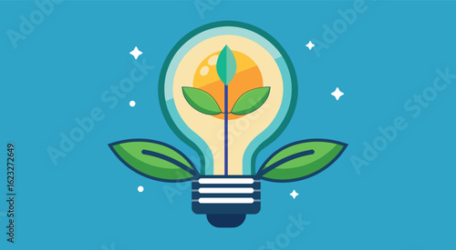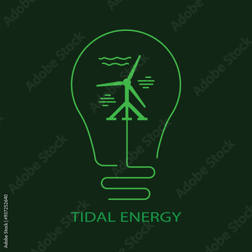 Renewable energy concept vector flat illustration. Windmills wind turbines and green trees inside of light bulb. Wind power alternative energy resource. Ecology protection and environment conservation