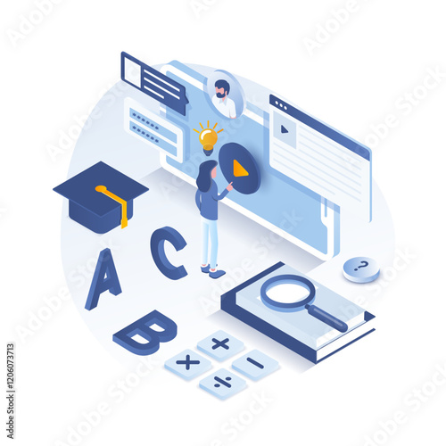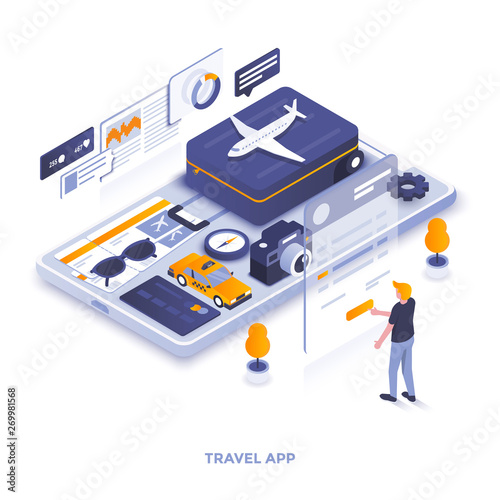 Renovation plan on smartphone vector flat isometric illustration. Smartphone with house plan blueprint on screen and home repair tool kit around it.