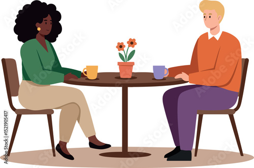 Romantic couple sitting at restaurant table and drinking champagne, vector flat illustration isolated on white background. Restaurant catering business.