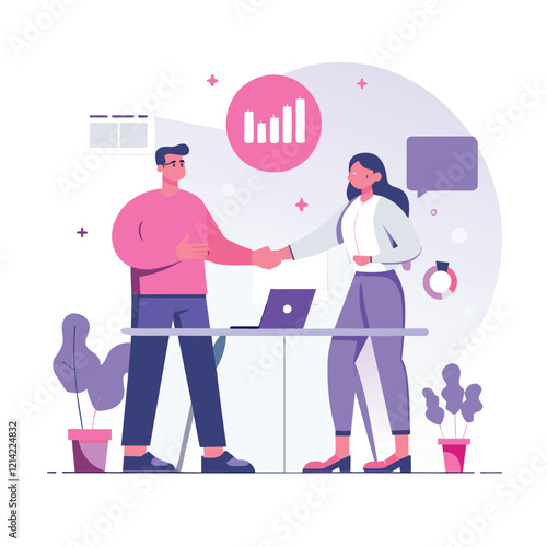 Restaurant cook giving ready dish to waitress. Vector flat illustration isolated on white background. Restaurant staff concept for web banner, website page etc.