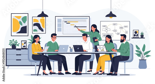 Restaurant chef cook and waiter in uniform, kitchen appliances and utensils, vector flat illustration. Commercial restaurant kitchen with male and female characters cooking food, holding silver dish.