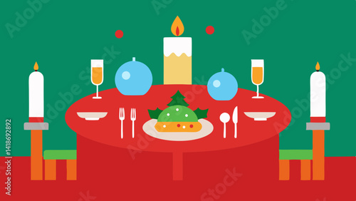 Vector flat style design illustration of chef hat, candles, wineglasses, wine bottle, crockery, notepad with pen, fruits. Cafe or restaurant services concept for web banner, website page etc.