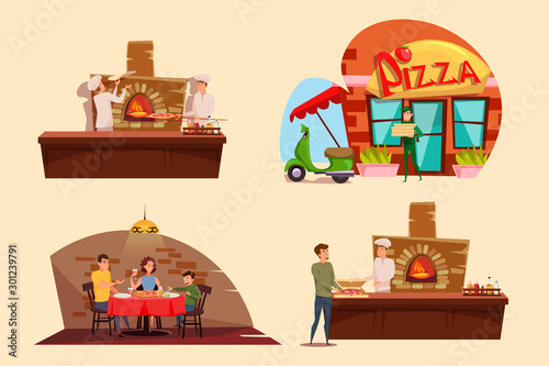 Restaurant staff vector. Cafe kitchen worker crew illustration. Catering building and chef, waiter with waitress, hostess, manager, barista, bartender, sashuiola, pizzaiola character