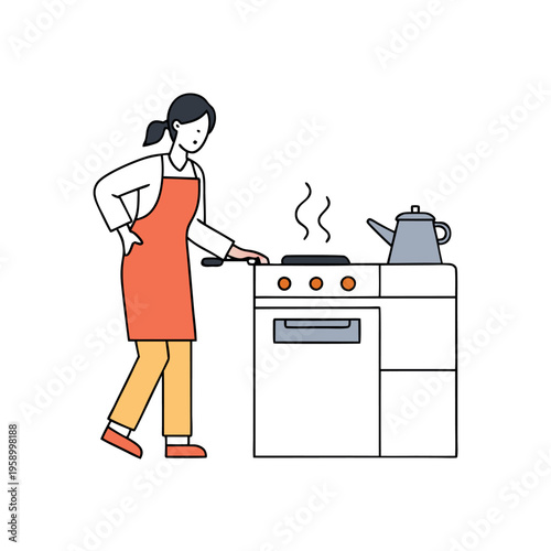 Man chef cook with kitchen scapula preparing tasty food while standing next to cooker, vector flat illustration isolated on white background. Restaurant worker in uniform cooking.