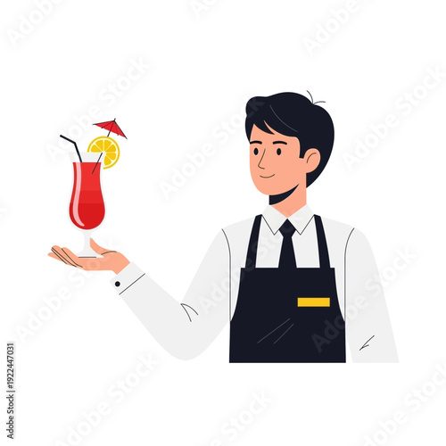 Man chef cook holding knife and red apple, vector flat illustration isolated on white background. Restaurant worker in uniform cooking.