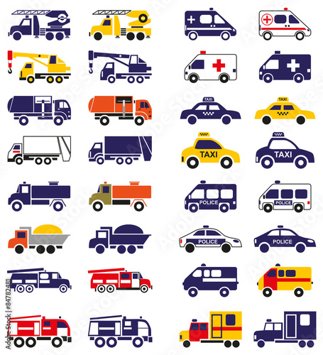 Road traffic accident set, vector flat isolated illustration. Car collision with bike, motorbike, pedestrian, another car. Auto accident, motor vehicle crash, injured cyclist, motorcyclist characters.