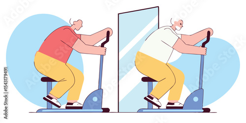 Robot and human running marathon race, flat vector illustration. Robotic machine winning competition. Artificial intelligence vs human.