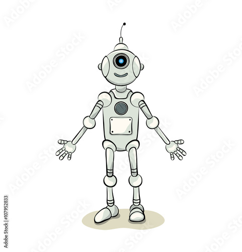 Robot assistant cleaning floor vector flat icon isolated on white background. AI robotic machine working daily routine chores using broom and mop illustration. Artificial intelligence technology