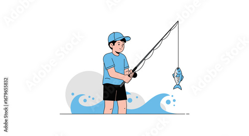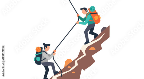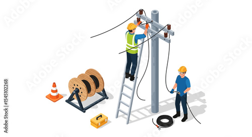 Robot assistant helping man to mow lawn vector illustration. Robotic housekeeping. Futuristic technology and housework process automation concept