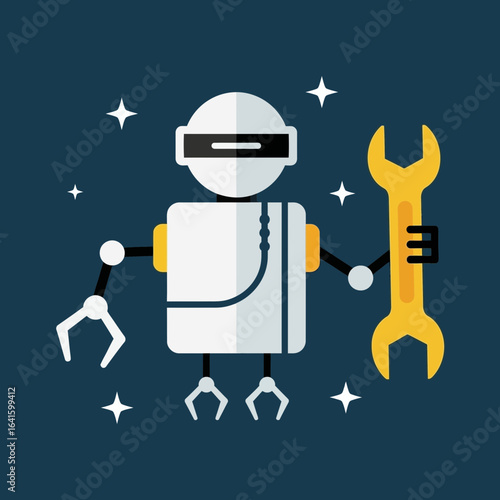 Robot assistant take trash out vector flat icon isolated on white background. AI robotic machine working chores, doing housework illustration. Artificial intelligence futuristic technology concept