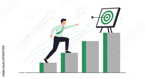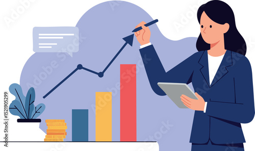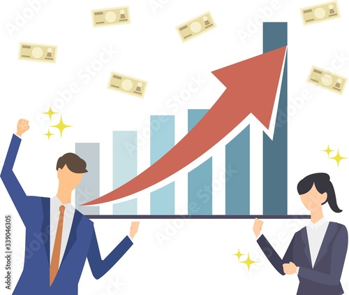 Robot machine winner standing on bar chart top and businessman falling down from it, flat vector illustration. Robot with trophy cup celebrating victory. Artificial intelligence.