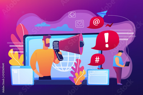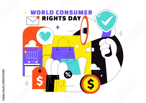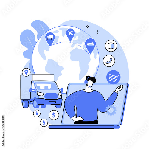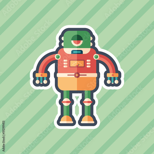 Robotics vector flat illustration. Robot, industrial robotic arm and hand, charts, graphs, joystick, dollar coins. Business process automation technology concept for web banner, website page etc.