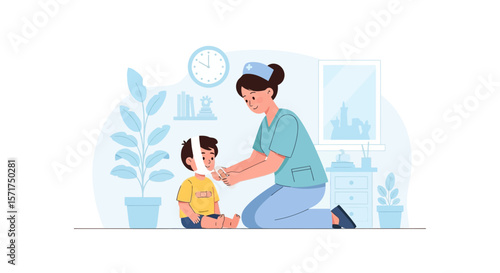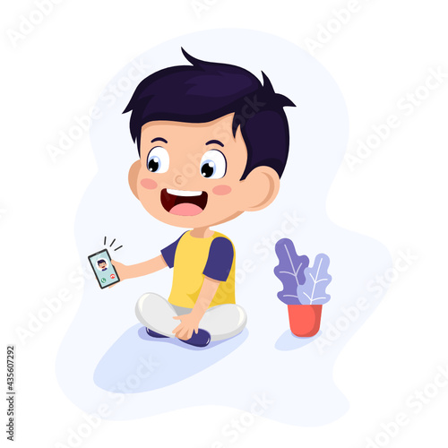 Robotics school. Cute boy, future engineer building robot, flat vector illustration. Kids robotics engineering.