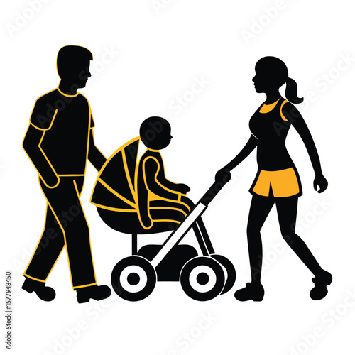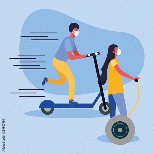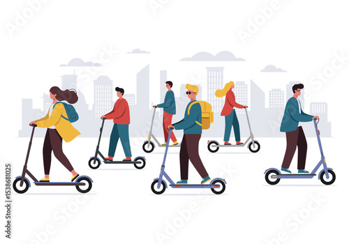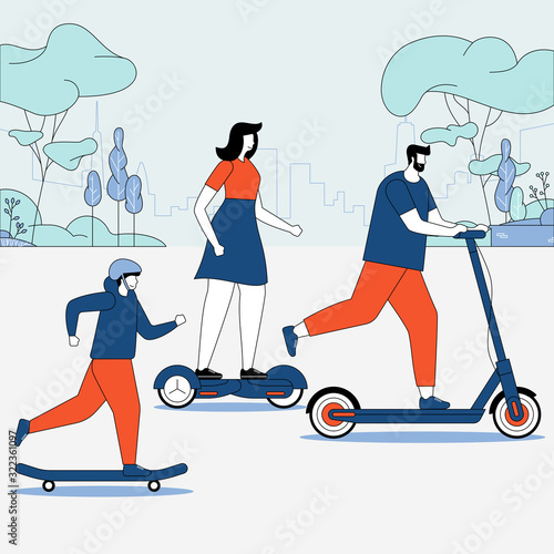 Vector isometric illustration of man walking with dog pet and domestic service robot walking with robot dog.