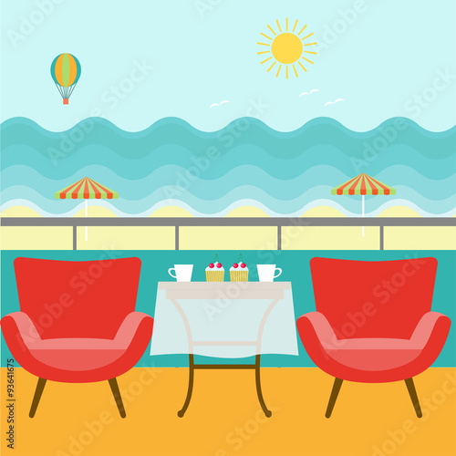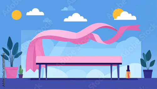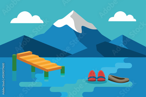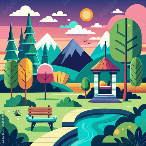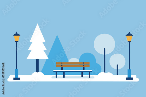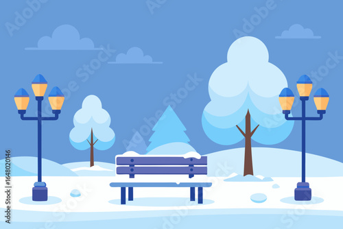 Romantic cople ice skating on a lake. Winter holiday sport activity vector concept illustration. Outdoor ice rink. Ice skating park with bench. Web site design template.