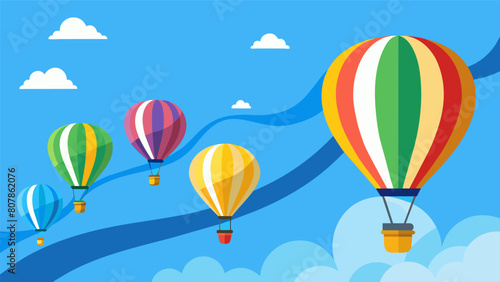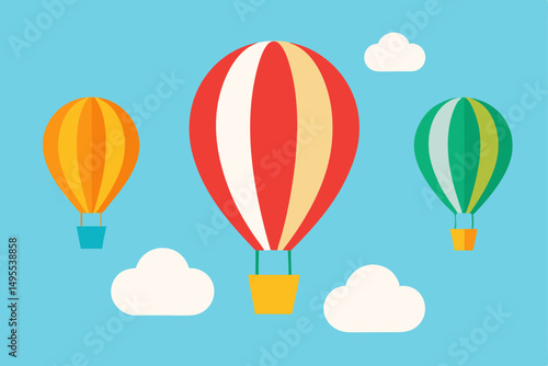 Layered paper cut style heart with fluffy clouds and happy couple flying in hot air balloon, vector illustration in paper art craft style. Romantic couple composition for Valentines Day greeting card.